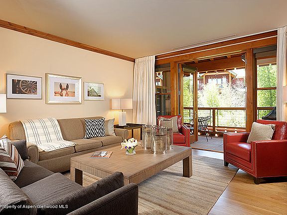 Complementary use of 19,000 sf athletic club and spa, which includes heated lap pool, outdoor and indoor hot tubs, kids and adult pools, steam room, sauna, cold plunge, racquet sports, reduced rate golf and aerobic classes. Additional amenities include daily maid service, concierge, restaurants, complimentary transportation to ski areas, Aspen and airport. In the winter, enjoy on-mountain ski storage at Two Creeks lift and our ski valet.