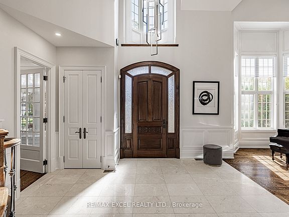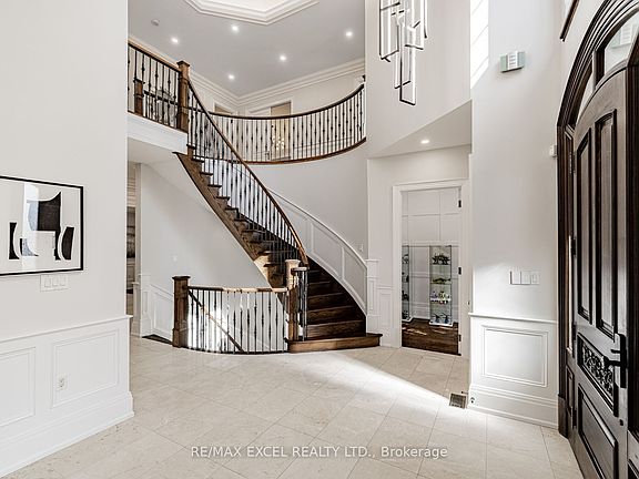 A timeless custom-built masterpiece in prestigious South Richvale, one of Richmond Hill's most desirable neighbourhoods. Set on a premium 75 ft 148 ft lot, this elegant home offers over 6,800 sq.ft. of refined living space with 10 ft ceilings on the main floor and 9 ft ceilings on the second floor and basement, blending classic architecture with modern comfort.The grand 20 ft foyer welcomes you with Italian marble flooring, a dazzling crystal chandelier, and an octagonal dome skylight with LED cove lighting. Flowing from the foyer, the living room features hardwood flooring, soaring ceilings, and a striking two-storey stone feature wall that radiates warmth and sophistication.The formal dining room shines with hardwood floors, pot lights, and a detailed coffered ceiling - perfect for elegant gatherings. The family room is spacious and inviting, with a waffle ceiling, fireplace, and custom built-in shelving - a perfect place to relax or entertain. The office, quietly positioned nearby, includes custom cabinetry and a walkout to the patio, offering an ideal setting for work or study.The gourmet kitchen stands at the heart of the home, showcasing a large center island, sleek cabinetry, and premium built-in stainless steel appliances. A bright breakfast area opens to a custom wood deck, seamlessly connecting indoor and outdoor living.Upstairs, the primary suite is a true retreat, featuring a spa-inspired 7-piece ensuite and a custom walk-in closet. A second ensuite bedroom provides privacy and comfort, while two additional bedrooms share a semi-ensuite, each enhanced with pot lights and organized closets.The finished walk-up basement offers a home theatre, custom wet bar, fitness room, and nanny/guest suite. Professionally landscaped front and side yards complete this exceptional residence, where timeless design and fine craftsmanship define the essence of luxury living.