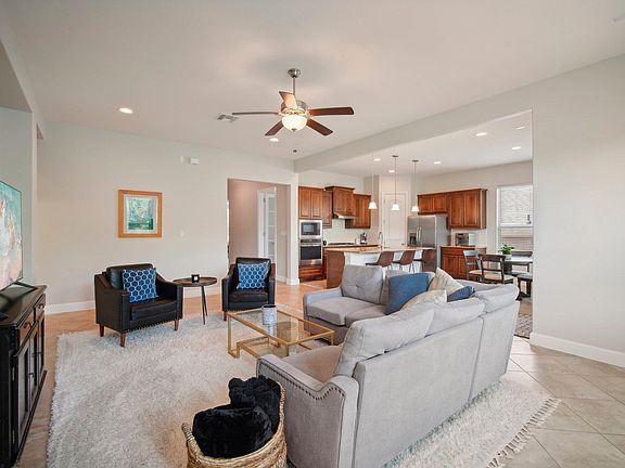 Landscaped yardOpen floor planHigh ceilingsRecessed lightingStainless steel appliancesGranite countertopsCovered patio