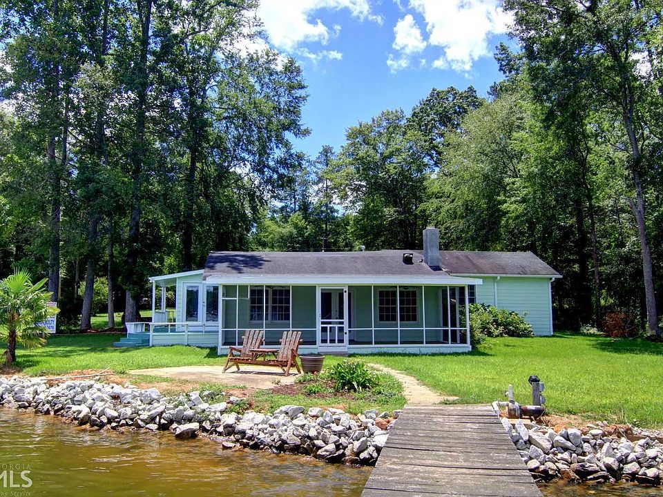 Waterfront Home that has been Recently Renovated. Cute, Move In Ready and a Level Lot. Prime & Private Tussahaw Location. New Flooring, Fresh Paint (Inside and Out), HVAC, Granite Counter Tops, Range/Oven and Shower Doors. The Family Room Overlooks the Lake with a Panoramic View. Two Bedrooms with Two Large Baths. Master Has a Huge Walk In Closet. Big Laundry Room. Kitchen, Dining and Livings Area are a Seamless Flow With a Beautiful View of the Lake. Floating Dock and a Pier. Personal Boat Ramp. Nice Deck and Patio Area. Perfect Entertaining Area or Just Kicking Back and Enjoying the Lake. Sandy Area which is Perfect for the Kids. Unique Separate Screen Porch with a New Rubber Roof and a System of Drop Down Screen Panel and Electricity. Large Outbuilding.