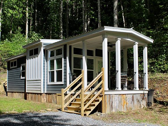 Back on the market and ready to sell! Enjoy mountain living in this tiny home. Great view from this 1.89 acre lot. This tiny home comes fully furnished and decorated with everything to live or use as a rental. Home features a built-in desk and table perfect for working from home. Home also includes a stackable washer/dryer. Come sit on the porch and enjoy dining, visiting with friends, or take in the beauty of the surrounding area. Gated community and close proximity to town add to the list of positives.