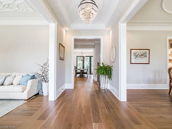 Situated prominently on a desirable tree-lined lot in Coronation Park, lies this gorgeous property featuring four plus 1 bedrooms and six bathrooms, den, gym, expansive grounds with pool. The elegant floor plan is ideal for a sophisticated but comfortable lifestyle. The dramatic foyer flows to the formal living room and dining room. Family room with custom tray ceilings, warm caster plast fireplace, breakfast area and gourmet kitchen featuring WOLF and SUBZERO and Bosch appliances overlook the professionally landscaped pool and grounds. Beautiful detailing throughout. The master suite features a his and hers shower and a separate dressing area with complete vanity and space to lounge. There's also a spacious home office, mudroom and a fully enclosed gym. Come check out this special property in one of the most serene neighbourhoods Oakville has to offer.