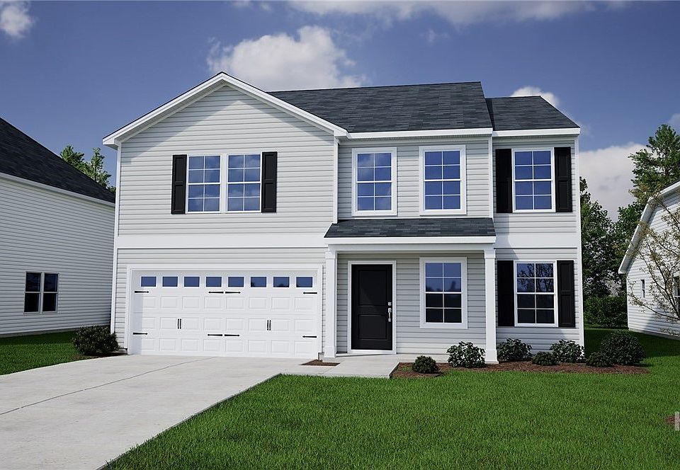 This is a two-story, 4-bedroom 2.5-bathroom home. An office space near the entryway with French doors perfect for work, dining, or play. The kitchen is attached to both a dining room and an informal eating area, leading into the family room. Upstairs, the primary bedroom has a roomy walk-in closet and a primary bathroom with double vanities and separate tub and shower. Three bedrooms share a full bathroom, and a spacious loft space for all to enjoy. Home is fully irrigated with entry gutters.