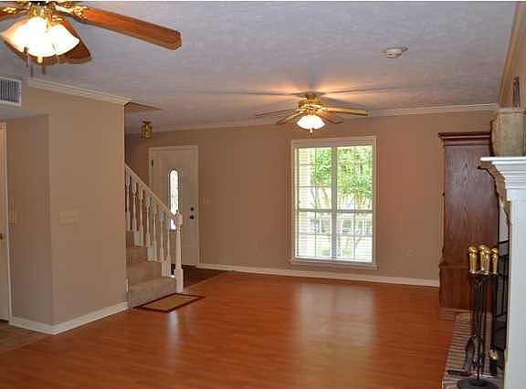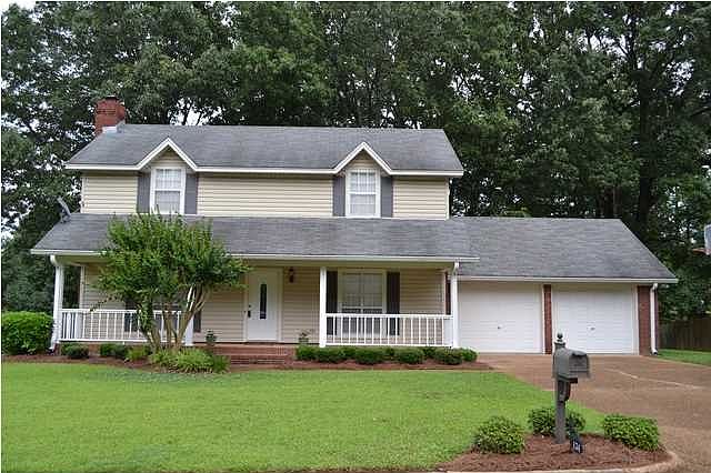 This home is move in ready! Large Family room with wood floors, real brick fireplace, a built in decorative book shelf and storage cabinet, and double doors to the back deck. The kitchen is clean and white with a nice smooth top electric range, built in microwave, dishwasher, refrigerator, a large eating area and the floor is tile. The master bedroom is huge with room for a king size bed and more furniture, 2 walk in closets and a private master bath with a large shower and double vanity. The two secondary bedrooms are also a nice size. There are ceiling fans in all the bedrooms. The laundry room comes complete with a washer and dryer! Plus additional storage cabinets and another door to the back deck. The backyard is huge and partially fenced. You can relax on the front porch and waive at your neighbors or sit on the back deck under the shade of the oak trees in the privacy of your own back yard. Super convenient to shopping, HWY 51, Interstate 55, schools, the reservoir and more. Call to see this home right away!