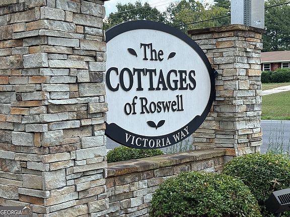 Hidden gem in Roswell, just one mile off Canton street with amazing restaurants, bars, best coffee shops in town. This amazing small community, The Cottages of Roswell is a desirable place to live, being part of a "big" family. One level home with adorable front covered porch, great to have a morning coffee or glass of wine in the evening. This home has 2 bedrooms, a large sunroom/den/office, It has been nicely remodeled, beautiful floors throughout. Painted cabinets, granite countertops with breakfast bar, glass top electric range, all appliances stay, even washer/dryer. French doors opens to a sun room/office/ that leads you to a partially fenced, private backyard feels like a vacation oasis, patio with plenty of room for flowers/vegetables. Both bedrooms are spacious and each bathroom has been remodeled. Master suite has a walk in closet. Close to all shopping, restaurants. Milton and Alpharetta is just a short drive. 0.5 miles is an amazing park with trails, sports courts/tennis courts and a public swimming pool.