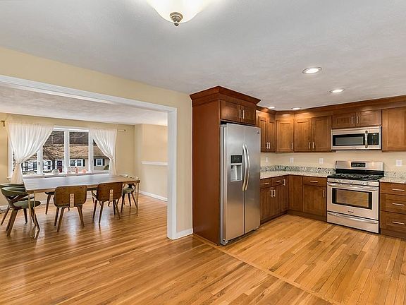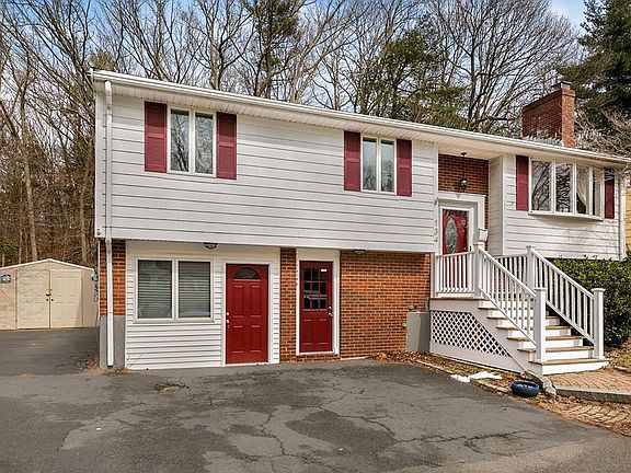 Fabulous three bedroom raised ranch awaits your visit! This home features an open floor plan, beautiful hardwood floors and central AC. On the main level you'll find a spacious dining room, double-entry full bath and three bedrooms, including a master with direct deck access. The modern, open concept kitchen with cherry cabinets, granite countertops and stainless steel appliances flows into an amazing family room with wood-burning fireplace, skylights, beamed cathedral ceiling with fan and slider to the deck. The finished walk-out lower level offers 600+ additional square footage of living space with another fireplace, half bath and three multi-purpose rooms including a den/ office space, dry bar, laundry room and large gym. Other highlights of this home include recessed lighting, a large deck, 100 sq. feet of outdoor crawlspace storage, shed and new gas furnace (2018). Great location only a few minutes drive from Rte 128, commuter rail stations and Legacy Place. Don't miss this gem!