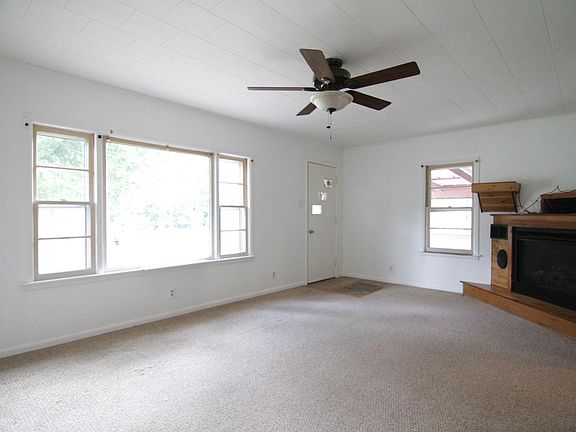 Two bedroom home with an attached carport, nice storage shed, and a portable garage on nice lot.
