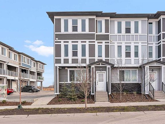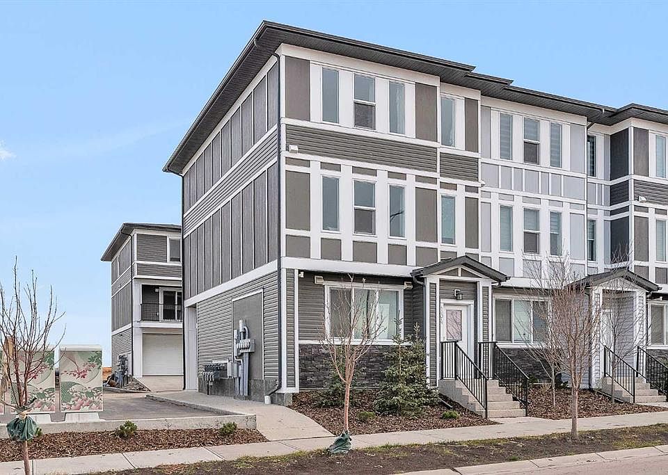 Beautiful Corner-Unit Townhouse | Extra Privacy | Pond Views | Buyer Incentive! This immaculately kept corner-unit stands out as the most private and desirable home in the complex, offering unmatched separation with no neighbor to one side and an open, airy exposure that fills the home with natural light. Positioned closest to (but not directly on) the main road, the location provides enhanced security and visibility that safeguards your home and vehicle. From the moment you step inside, you’re greeted by soft, neutral tones and an open-concept layout that feels warm, modern, and effortlessly inviting. Stunning quartz countertops are throughout the home, complemented by elegant gold hardware on freshly painted cabinetry. Stylish kitchen light fixtures and a statement chandelier in the dining area create an elevated, cohesive design. As you walk through the main living space, large windows frame serene pond views and beautiful east-facing sunrises, adding a sense of calm to your daily routine. The attached garage offers convenience year-round, while the lower-level office space provides the perfect spot for remote work or a quiet study area. Upstairs, you’ll find three spacious bedrooms, including a gorgeous primary suite with a double-sink ensuite designed for both comfort and luxury. Every detail of this home has been thoughtfully cared for, and the exterior includes durable Hardie siding with stone accents for extra protection against hail and weather. *Move in with confidence: this home was professionally inspected at possession, is backed by the Alberta New Home Warranty Program (1–10-year coverage) and will be professionally cleaned upon firm sale. As an added incentive, buyers can choose either a full reimbursement of their home inspection or two months of condo fees paid by the seller. With a brand-new retail plaza going up across the street—including a Tim Hortons—everyday convenience is right at your doorstep. This is truly the standout unit in the complex—bright, private, stylish, and exceptionally maintained. Quick possession is available due to seller relocation. Homes like this don’t come up often, and this one won’t last.
