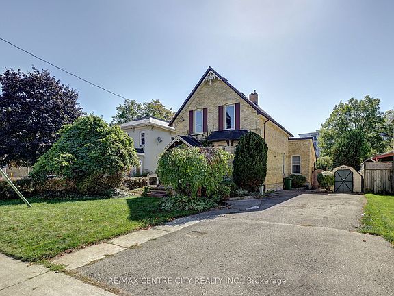 Step into timeless charm at this classic century yellow brick 1.5-storey home, where historic character blends seamlessly with modern updates. Offering 3 bedrooms and 2 full bathrooms, this property is filled with warmth, space, and natural light throughout. A welcoming foyer greets you as you enter, opening into a large living room and formal dining room accented by plenty of windows that create a bright, airy atmosphere. The updated kitchen, featuring patio doors to a spacious deck, is ideal for family meals and entertaining. On the main floor, you'll also find a bedroom with direct access to the backyard hot tub (only 2 years old), making it the perfect spot to unwind, along with a convenient full bathroom. Upstairs, the home offers two generous-sized bedrooms and an office/laundry room that could easily be converted back into a 4th bedroom, providing flexible living options for a growing family. Another full bathroom on this level adds to the homes comfort and practicality. Outside, enjoy a fully fenced yard with mature landscaping, a handy storage shed, and ample parking it's perfect for kids, pets, gardening, or hosting summer gatherings. Situated in an ideal and convenient location close to the Whistle Stop walking trail, restaurants, and all your shopping needs, this home combines character, charm, and everyday functionality. Whether you're a first-time buyer, an expanding family, or simply someone who appreciates the craftsmanship of a historic home with modern updates, this property offers the best of both worlds. Don't miss your chance to own a piece of history and make it your own!