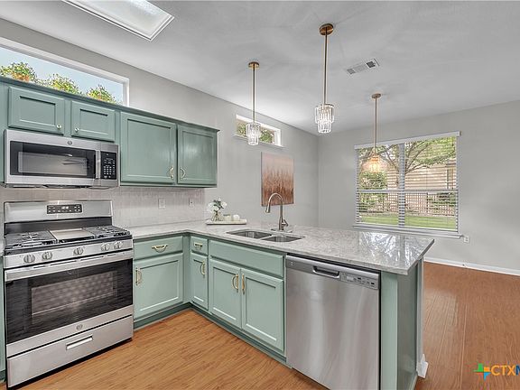 Newly updated 2-bedroom, 2-bath home with 1,310 sq. ft. in Sun City Texas, Georgetown’s premier 55+ active community. This home offers an open floor plan with updated fixtures and durable vinyl flooring throughout. The kitchen features stainless steel appliances, painted cabinetry, and generous counter space, while the living area opens to a covered screened-in porch perfect for relaxing or entertaining. The main bedroom includes a walk-in closet and private bath, and the second bedroom is well-sized with convenient access to a full bath. Sun City residents enjoy championship golf courses, resort-style pools, and state-of-the-art fitness centers for an unmatched active lifestyle.