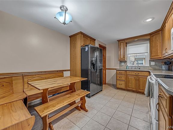 Beautifully updated and MOVE-IN READY 3 BR, 2 Bath Ranch style home in a sought after neighborhood! Featuring an open floorplan, bright and freshly painted eat-in kitchen with loads of cabinets and Corian countertops, recessed lights, tile floors, custom bench seating and appliances are included! Spacious living room and dining area both with bamboo hardwood flooring and plenty of natural light. 3 good size bedrooms all with ample closet space. Full bath with newer tile floor, granite topped dual sink vanity, upgraded tub surround and extra deep bathtub. Full basement has a finished rec room with built in storage plus a finished weight room, second full bath with standup shower, workshop space, glass block windows plus the washer and dryer stay! Attached garage with attic storage, built-in cabinet storage, garage door opener and refrigerator that stays! Enjoy summers in the awesome fully fenced backyard on your stamped concrete patio with awning, firepit, horseshoe pit and storage shed. Doublewide driveway sealed 2023, tankless hot water 2020, newer electric, furnace and A/C, covered front porch. Showings begin SAT 6/17@12PM-OFFERS TO BE IN BY THURS 6/22@12PM-OPEN HOUSE TUE 5-7PM!