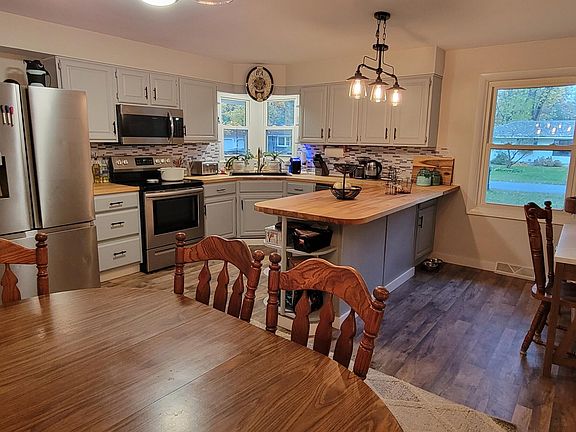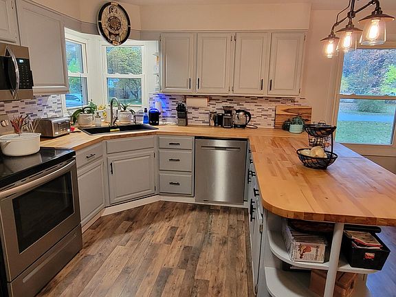 NEW PRICE! Beautiful 1264 sq. ft.(on main floor) ranch home w/2 bdrms on main, and a couple possible bdrms in lower level (LL) w/additional 1264 sq. ft. One bath on main & shower in LL. Features include updated kitchen, w/back splash, snack bar, and pantry w/barn door, and beautifully remodeled bathroom. Partially finished basement w/extra shower, huge workshop, finished office/bedroom (w/install of egress window), plus large rec room that could also be a bedroom w/install of egress window. Outside the nicely landscaped yard has in ground sprinkler system on a separate well for sprinkling only (works from your phone), large deck w/.9 acres (goes beyond the chain link fence), and room for your own garden. Has 2 stall detached garage. Call for your showing today.