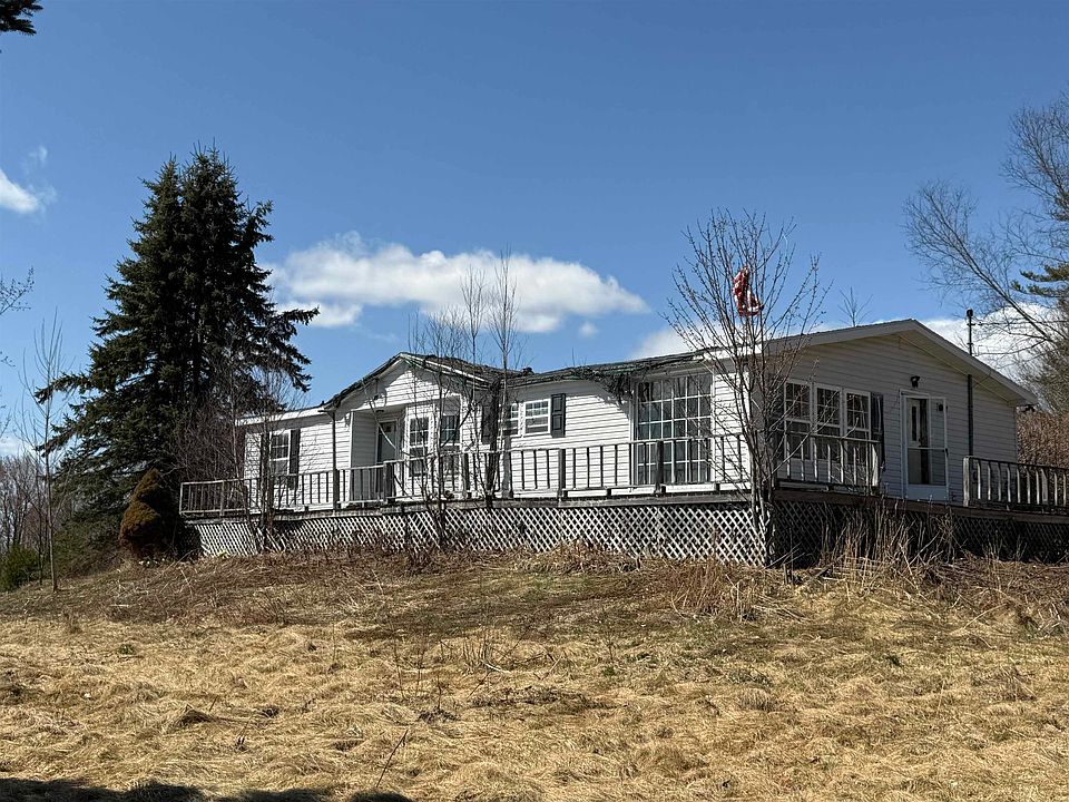 Sited on a beautiful 10+ acre lot with views to the south of Cannon Mountain and Mt Lafayette, this 28' x 52' 1992 double wide manufactured home is in need of heavy renovations or replacement. The property is being sold "as is, where is" and it will be up to the buyer to determine if the manufactured home is salvageable. The property has been vacant for a couple of years and the roof has been leaking and the ceiling has collapsed in a few places causing extensive damage. The home looks compromised and shows evidence of mold growth so entry is at buyer's risk (see photos for examples of damage - not all areas are represented in photos). There is a concrete slab under the home which would be a good base for an updated modular home or manufactured home. A 2-bay garage offers parking and storage and there is a drilled well and private septic of unknown condition. The land is mostly open field offering a great opportunity for homesteading or a hobby farm. Snowmobile and ATV access directly from the property for the outdoor enthusiasts. It is also in a great location for commuting to St. Johnsbury, VT or Littleton & Lancaster, NH.