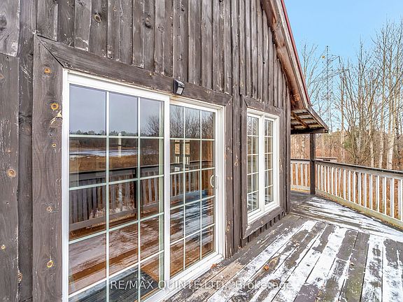 Discover your private off-grid retreat on 8.35 scenic acres just north of Tweed, Ontario. Built in 2017 and designed for efficient, economical living, this rustic home blends modern comfort with natural charm. The main level offers a bright, open-concept kitchen and living/dining room with patio doors leading to an expansive wraparound deck overlooking the pond. Fitted with two 3-piece bathrooms, the home also features a loft-style bedroom with a cozy living nook. The finished basement includes a walkout and a recreation room with a wood stove. Whether you're seeking to make this a year-round residence, a recreational hideaway, or a peaceful homestead, this unique property offers space, privacy, and endless potential. Equipped with a dug well and septic system, the property runs entirely on solar power and includes a generator hookup.