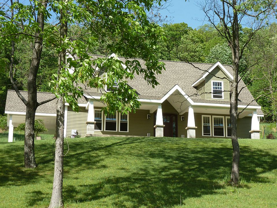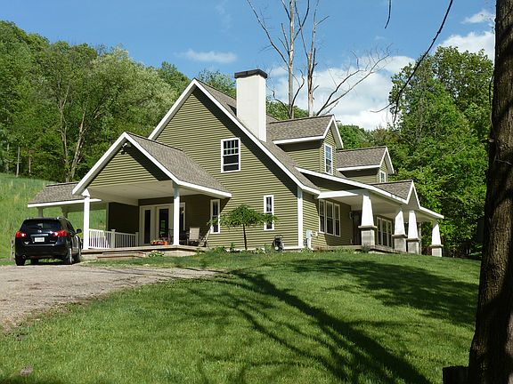 Beautiful Eclectic Home Nestle in the trees. Directly across from IUP Co-op Farm and White's Woods Nature Center. Great for hiking, biking and cross-country skiing. Main floor Master Bedroom, Master-bath, Laundry and Powder-room. Kitchen, Living room & Dining Room are one large area. This is great for entertaining. Large Front and side porches again great for outdoor entertaining. All the bedrooms and baths are quite large. Master Bedroom closets are large, one is a nice size walk-in closet. Master bath is nice size with a full shower. 10'x14' Storage Shed. Large Unfinished basement with a 5" Wide exterior access. Living Room-16'6"x21'3", Kitchen-11'x16'6", Dining Room-11'6"x16'3", Entry- 5'4"x8'3", Master Bedroom-16'x16", Master Bath-11'10"x8'4", Master Bedroom Closet 1-7'6"x5'6", Master Bedroom Closet 2- 7'6"x2', Upstairs Bedrooms-14'x16' + 5'x8'6", Upstairs sitting room-15'10"x7'2", Upstairs Bath-11'10"x8'4", Laundry-8'4"x11'7", Powder Room-3'5"x7'6". Kitchen, Master Bath and Upstairs bath Granite tops with Custom cabinetry, Hardwood wide plank solid oak floors in Living Room, Dining Room, Kitchen and Large 1st Floor Hall, Tile in Baths, Laundry and Entrance, Carpeting in all the bedrooms and upstairs sitting area. Tilt-down Double-Hung Windows. All Bedrooms quite large along with the bath-rooms. All doors and halls are wide.
