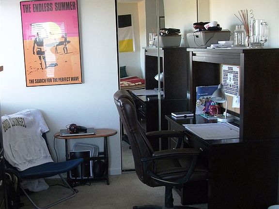 Corner unit with view in this spacious 2 bedroom 2 bath condo with a 10min walk to Showker Hall and bus stop just a few steps away. The two bedrooms are furnished with nice matching bed, nights stands, chest of drawers and matching desk; sofa, chair, and accents tables; and dining table with stools. Laminate flooring in the main living area. Nicely decorated for the new owner. Currently owner and tenant occupied. Tenant pays $460 monthly.