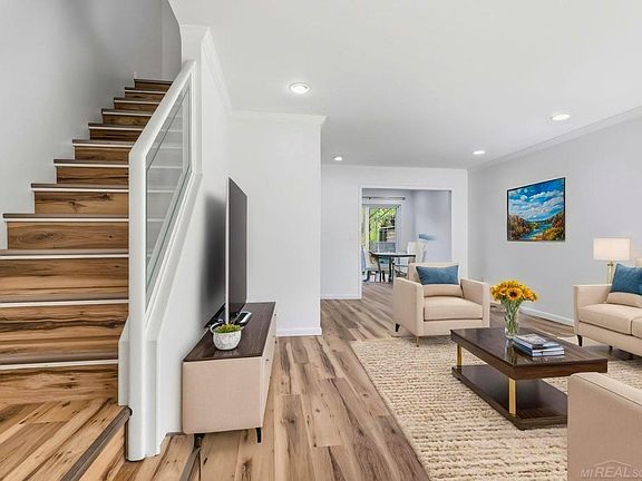 Welcome home to this beautifully renovated 2-bedroom, 1.5-bath condo in the sought-after Kings Cove community—one of Rochester Hills’ most scenic and peaceful settings. Locted at the "Foot of the Bluff", fully remodeled and move in ready, this residence blends modern design, bright natural light, and quality craftsmanship throughout. Step inside to a spacious open-concept layout featuring brand-new luxury plank flooring, fresh neutral paint, and LED recessed lighting all wrapped and adorned in crown molding. The living area flows effortlessly into a dining space and a stunning new kitchen complete with white shaker cabinetry, premium granite counters, full granite backsplash, stainless steel appliances, and direct access to a private deck through the newer Anderson sliding glass doors—perfect for morning coffee or an evening escape. Upstairs, you’ll find two comfortable spacious bedrooms, including a large primary suite with a fully updated full bath. The full basement with with tall ceilings offers excellent potential for a recreation room, home gym, added living space or just additional storage, while the attached garage adds everyday convenience. Located just minutes from downtown Rochester, steps away from the Paint Creek Trail, and around the corner from Oakland University...Kings Cove offers a serene setting surrounded by rolling hills, mature trees, walking paths, and community amenities. Enjoy easy access to shopping, dining, and award-winning Rochester Community Schools—all within one of Metro Detroit’s most desirable areas.
