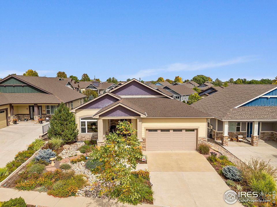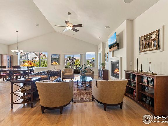 Welcome to this beautifully maintained 4 bed, 3 bath ranch home with walk-out basement in The Enclave at Registry Ridge. Inside, an open floor plan with quality finishes and thoughtful upgrades flows seamlessly, featuring a spacious primary suite with a cozy fireplace and a luxurious 5-piece accessible bath. Enjoy low maintenance and main level living with the primary bedroom, laundry, kitchen, DR, LR, and office all on the main level. Perfectly positioned across from a neighborhood park and backing to HOA open space with community garden plots, it offers a spacious and light-filled atmosphere. HOA maintains the open space and plows the snow all the way to the front doorstep. Meticulously cared for and move-in ready, this home is a true gem. Owned solar panels and 220V garage hook-up are an added bonus.