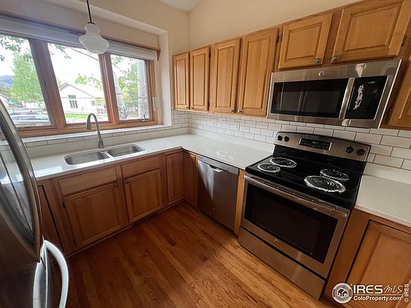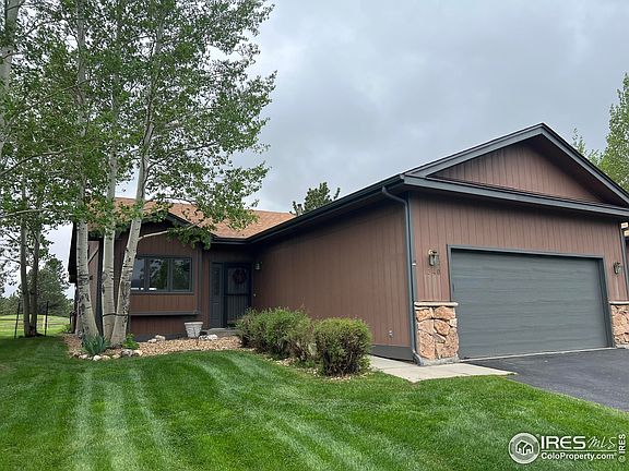 Relaxed Golf Course Living with Mountain Views - Welcome to 1340 Matthew Circle, a beautifully maintained ranch-style condo tucked away in a quiet Estes Park neighborhood and perfectly positioned along the green fairways of the 18-hole Estes Golf Course. This charming home offers the ideal blend of peaceful living, mountain charm, and low-maintenance convenience.Step inside to an inviting open-concept layout featuring vaulted ceilings, abundant natural light, and a spacious great room with a cozy gas fireplace. Sliding glass doors lead to a covered back patio-the perfect spot to sip morning coffee while taking in panoramic views of the course and surrounding peaks.The kitchen is both stylish and functional with updated stainless steel appliances, sleek quartz countertops, subway tile backsplash, and plenty of cabinet space. Just off the kitchen, the dining area and living room flow together for seamless entertaining.The spacious primary suite is a true retreat, boasting golf course views, a large walk-in closet, and a five-piece ensuite bathroom with soaking tub and dual vanities. Two additional bedrooms offer flexibility for guests, a home office, or hobby space. One features built-in shelving and a picture window nook, perfect for a reading bench or workstation.The home also includes a covered back patio that overlooks the fairway and mountains beyond, creating a tranquil outdoor space for relaxing or entertaining. The oversized two-car garage provides generous storage with built-in shelving and loft space. A dedicated laundry room with washer, dryer, and upper cabinetry adds everyday convenience. Updated lighting, solid wood cabinetry, and easy-care finishes throughout the home make for comfortable and efficient living.
