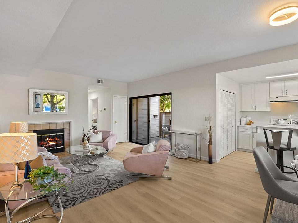 Step into this 2 BD/ 2BA home, where a harmonious blend of comfort, style, and convenience awaits you. The open concept living space is centered around a fireplace that brings warmth and character, while glass sliding doors invite sunlight throughout the day and provide a seamless connection to the private patio. The outdoor space is ideal for relaxing or enjoying the fresh air in a peaceful setting. Adjacent to the living area, the kitchen is arranged for everyday efficiency, featuring modern appliances and ample counter space. The breakfast bar adds a casual dining option while maintaining a natural flow into the dining area, making everyday meals and gatherings effortless. The primary bedroom, situated at the end of the hallway for added privacy, offers generous storage and an ensuite bathroom designed for comfort. The secondary bedroom is versatile, well-suited for guests or a personal retreat, with a nearby full bathroom that enhances practicality. Located in a sought-after area near San Jose Municipal Golf Course, major shopping centers, and the vibrant downtown San Jose, the residence is in a strategic position, balancing accessibility with a sense of retreat.