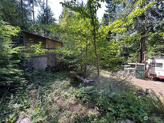 The possibilities are endless! If you are looking for a secluded, off grid property, this is the one! Take what has been started and make it your own. There are multiple outbuildings to use for storage, or convert into a shelter area. You will find a level clearing for a building site, as well as more farther up the hill. When you get to the top of the property you will find a view of the lake and a seasonal stream. Although this property is very secluded, you also get to enjoy all the Lake Cushman amenities- access to the lakes and boat launches, golf course, tennis courts and clubhouse. Property is behind a locked gate- make sure to bring your agent!