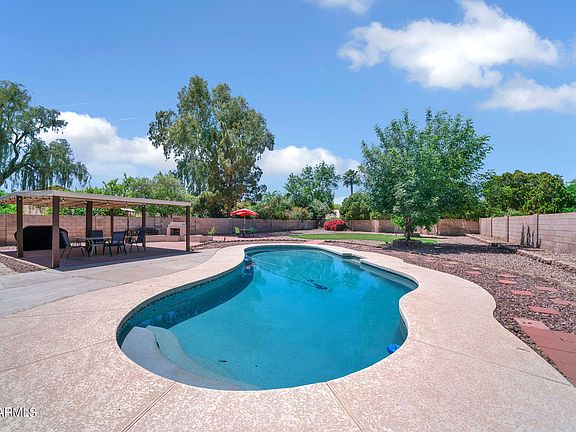 WOW!! Looking for a huge lot?? This home offers over 14,000 sq ft with private pool, covered patio, spacious ramada, outdoor fireplace, and so much more. You'll love the layout of this spacious 2540 sq ft home w 4 bedrooms/3 baths, large kitchen & family room. Large DR or LR (overlooking pool). Separate master w private office/sitting room. Spacious master bathroom & closet. Two more bedrooms share one bath at one end of home & another bedroom/bathroom (perfect guest/senior/teen suite). Large kitchen w plenty of cabinet space and pantry. Family room w exit to backyard / patio. 3-car garage w storage cabinets. New roof June 2022. Pool refinished July 2020 -- Pebble Tec, sand filter & variable speed pump. Home within minutes of Downtown Chandler & Gilbert Restaurant district.