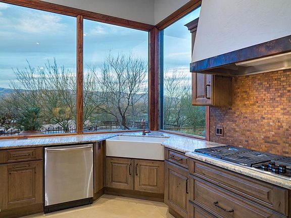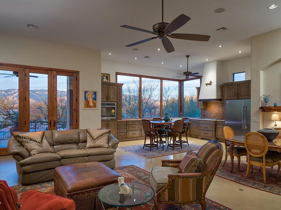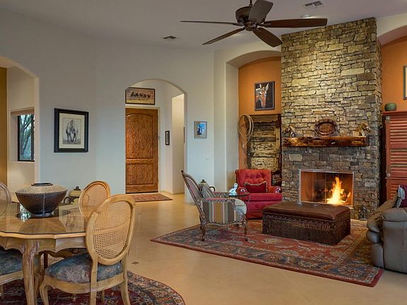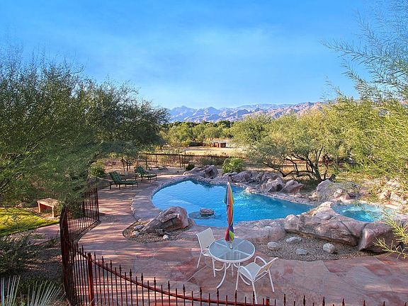 Very private 3,328 sf, 4 bedroom home in the middle of horse country just 1/2 block from Tucson city limits. Lush mesquite trees and foliage surround this 3.92 acre property with gorgeous panoramic views of Catalina & Rincon Mountains. Five homesite gated community. Castlebrook 4 stall barn plus hay & tack rooms with fenced corral area and 300 yards out back gate to Tanque Verde Creek trails. Kitchen remodeled in 2014 has 16 feet of picture windows (over 6 feet high) capturing Catalina views. Kitchen features walk-in pantry, knotty alder cabinets, farmhouse sink, granite countertops, SS appl, WOLF gas cooktop, Bosch dishwasher, separate freezer & refrigerator. Scored concrete floors, 12' high ceilings, and remodeled bathrooms. Backyard has flagstone patios, pool, spa with rock water feature.