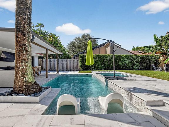 Spacious laundry roomResort-style outdoor livingMarble paversOversized lotSpacious covered patio areaUpdated kitchenBuilt-in office nook