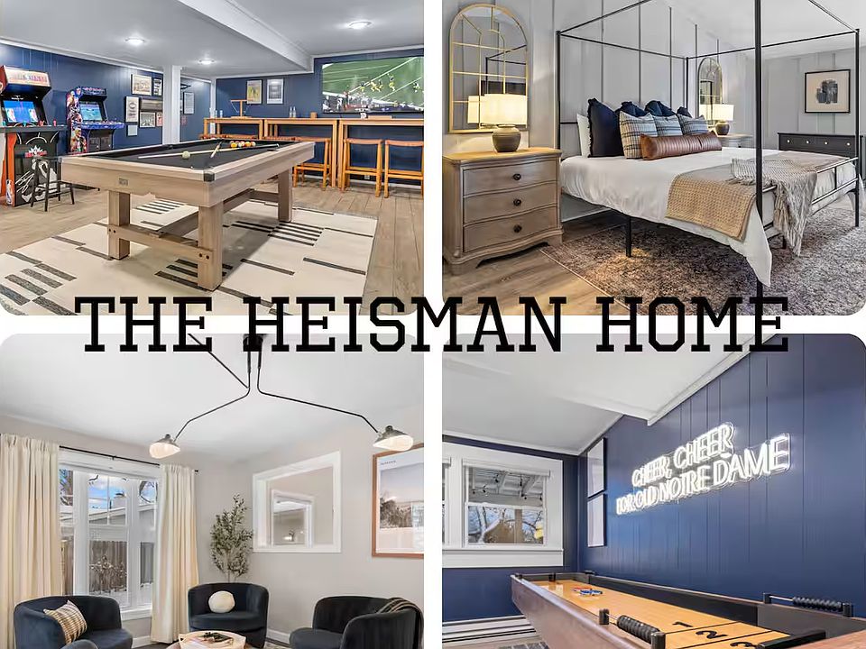 This home is custom-designed to create the ultimate relaxation and entertainment experience. Located 3 minutes to all the action at Notre Dame and Eddy St, and only a 10-minute drive to downtown South Bend! Whether you're here to cheer on the Fighting Irish or simply enjoy the charm of South Bend, the Heisman Home provides the perfect blend of comfort, style, and entertainment. Book your stay now for an unforgettable experience!