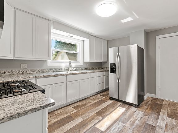 Nicely remodeled home throughout. This 3 bedroom, 1 bath home features an all new kitchen with tile flooring, granite counter tops, Stainless Steel Appliances & sink and brand new white cabinetry. Hardwood floors accent the entire home and is surrounded by white trim and doors, gorgeous remodeled fully bath, full basement and separate garage with back ally access. Great starter home with a whole lot of NEW items.