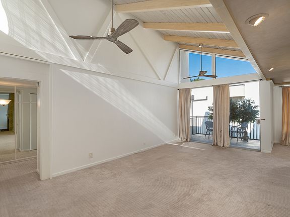 Experience upscale living in this GlenRidge Townhomes penthouse. Wonderful back-facing, corner unit with no one above, offering incredible character, vaulted wood-beamed ceilings, and expansive windows showcasing breathtaking Century City and treetop views. Step into a tiled entryway with a coat closet and a large, elegant powder room featuring a glass bowl sink. The dramatic living room boasts soaring ceilings, a cozy fireplace, and a large sliding glass door leading to a private balcony perfect for enjoying spectacular city views. The formal dining area features stylish paneled walls and seamlessly connects to the sunny kitchen, complete with bamboo flooring, stainless steel appliances, built-in microwave, and tiled countertops and new refrigerator. The second bedroom offers versatility as a home office, guest room, or cozy retreat, featuring a fireplace, closet, and stunning city views. The spacious primary suite includes crown molding, two closets (including a walk-in with built-in shelving), and an en-suite bathroom with a skylight and tile countertops. Also a private laundry area with stackable unit and built-in shelving adds lifestyle convenience. This penthouse offers only one shared wall and comes equipped with central AC/heat. The resort-style community features a sparkling pool & spa, secured tandem parking for two cars with storage, and a pet-friendly policy. Located in an unbeatable location near Westfield Century City Mall, UCLA, and Beverly Hills, and within the sought-after Fairburn Elementary School district Water paid from association, tenant is responsible for all other utilities.