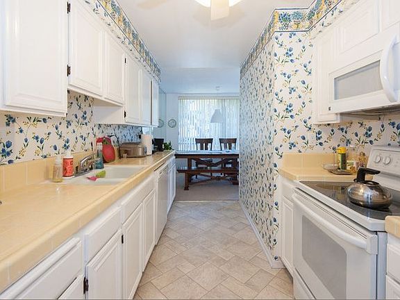 Top floor, 2 bed, 2 bath, corner unit with no adjoining walls to another unit. This complex is in a convenient location in the highly acclaimed Fairburn Avenue Elementary School District. Spacious living room has a wood burning fireplace and wet bar. Vaulted ceilings and large windows make this condo feel incredibly light, bright and open. Large master bedroom has a walk-in closet. This unit features side-by-side laundry in unit, great balcony with tree top views, and extra storage. Building amenities include beautiful, lush grounds with lots of trees, gated and secured parking, community pool, spa and sauna. Feels like home!