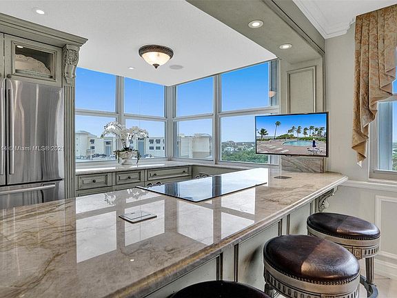 Stunning unit in beachfront building with views of the Ocean, Lake Santa Barbara, and the Intracoastal. This classic, French-Provincial unit is completely renovated. A Steven G designed, Furniture Negotiable. 2 bedrooms and 2 bathrooms. This spectacular condo contains an open floor plan and top quality upgrades. Fully renovated kitchen, bathrooms and bedrooms. A unit you do not want to miss! Close to Atlantic Blvd with ample places to eat, drink and shop, all while enjoying the beach.All Assessments paid. No obstruction of view.