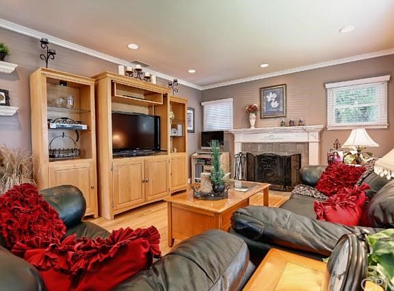 This is the one! Nothing to do but move into this charmer located in the desirable Holy Trinity area. Spacious living room offers several windows for natural sunlight, a custom fireplace with mantle and a semi-formal dining area. Remodeled kitchen features custom cabinetry, granite counters, natural stone flooring and stainless steel appliances. Oak hardwood floors throughout, neutral wall paint, crown molding and 2" faux wood blinds add to the warmth of the interior. Front and rear yards are fenced and fully landscaped and there is a covered patio area that is perfect for backyard entertaining. The 2 car garage is where you'll find the laundry hookups and there is also driveway parking for another 2 cars. Additional upgrades include dual-pane vinyl windows, central heat and air conditioning, 4 year old roof and a security system. The perfect starter home!
