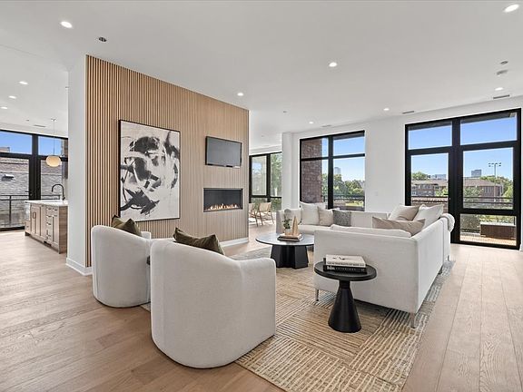 Premier new construction boutique elevator building overlooking Eckhart Park with sprawling 4200 sf floor plan all on one level making it an amazing single family home alternative. Residence 301 is the best floor plan in the building with an unprecedented 53 ft width, sunny southern and eastern exposure, ideal corner unit layout with 4 bedrooms + den + family room, 4.5 bathrooms and panoramic green views of the park with protected views of the Chicago skyline. Incredibly spacious living area with wide plank flooring, floor-to-ceiling windows, and feature wall with gas fireplace. High end chef's kitchen with custom full height shaker cabinetry, top of the line integrated appliances including SubZero, Wolf, & Bosch, quartz countertops & full height backsplash, and a plethora of storage including a walk-in pantry. Secondary family room with wet bar and beverage center. 4 generously sized en-suite bedrooms each separated for privacy plus an additional den with french doors perfect for home office or gym. Substantial primary suite with large walk-in closet, and spa-like bathroom with heated floors, water closet, oversized shower, and separate soaking tub. Full laundry room with side-by-side W/D and sink. This home boasts three sizable outdoor terraces with wood tile and synthetic turf. Two adjacent parking spaces in the attached heated garage included in the price. Hot Noble Square/West Town neighborhood, conveniently located minutes from downtown with Michelin Star restaurants, boutiques, and cafes within walking distance yet tucked away on a quiet tree lined street facing the park.