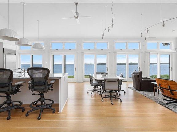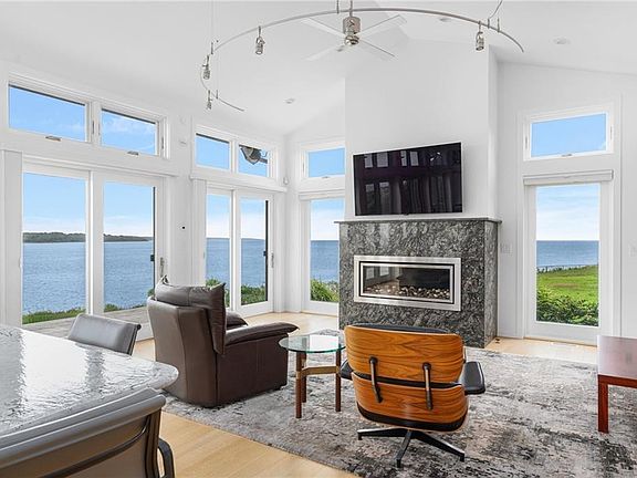 Welcome to Windswept your dream waterfront sanctuary next door to an historic lighthouse! This 2014 custom- built, completely-renovated, contemporary ranch home embodies the essence of care-free coastal living and entertaining. It offers you a relaxed lifestyle with breathtaking, unobstructed views of Narragansett Bay from every room. The home faces East and allows the homeowners to witness dramatic sunsets and moonrises on the ever-changing setting and conditions on Narragansett Bay. There are sweeping panoramic views extending to Patience and Prudence Islands to the East along with the eastern sections of RI and MA, Barrington Beach to the North, Jamestown, Mt. Hope Bridge, and the iconic Newport and Jamestown bridges to the South. The meticulous design (3-Bedroom, 2-full Baths currently being used a 1 bed) and setting of this residence situated on 1.2 acres, with nearly 400-feet of direct waterfront frontage, ensures that you will always have a front-row seat to the beauty of your surroundings, both inside and out. Wake up or fall asleep to the soothing sounds of the waves and bell-buoy offshore. Enjoy a cup of coffee or dine on your full length Eramosa Limestone terrace, fully accessible from multiple sliding-glass doors in the Great Room and Master- Bedroom. Full Details of the home Specifications are attached