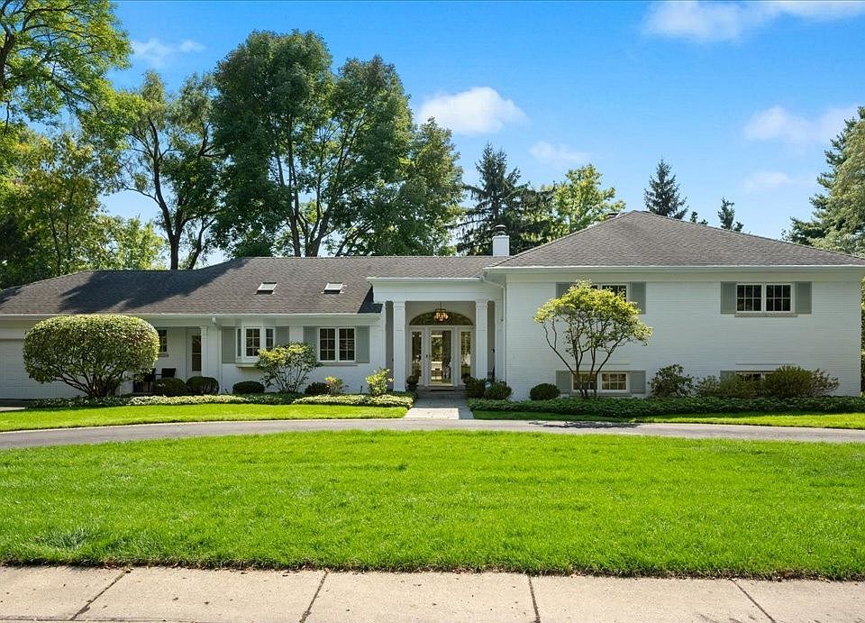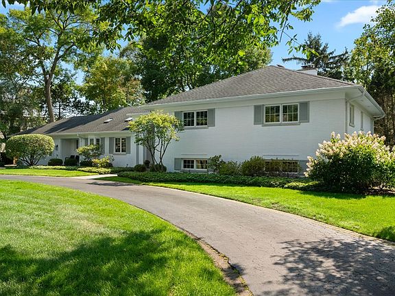 This timeless 4 bedroom 3.1 bathroom white brick split-level home sits on a beautifully landscaped 1/2-acre lot on a quiet, private street. A true Winnetka gem- this Hemphill home has 3,800 SF! The property offers the rare convenience of both an attached garage and a circle driveway, with a welcoming bluestone walkway leading to the front door. Inside, a bright foyer opens to sun-filled living spaces with southern exposure and sweeping views of the backyard. The living room, anchored by a gas fireplace and bay window, flows seamlessly into the dining room and family room, where sliders open to the patio for easy indoor-outdoor living. The updated kitchen is a standout, with vaulted ceilings, beams, skylights, white quartz countertops, new appliances, modern lighting, and fresh hardware, and connects to a mudroom with first-floor laundry. The split-level layout checks every box: just eight steps up to three spacious bedrooms and two updated full baths, including a primary suite with a private balcony overlooking the backyard. Eight steps down leads to a bright ground level with a large recreation room, walk-out patio, a fourth bedroom, renovated full bath, and utility room. Thoughtful updates include newer windows, dual 2023 HVAC systems, and a 2025 water heater. Additional features include a pull-down attic for abundant storage and an attached garage with a dedicated storage shed. Outdoor living shines with multiple patios, mature trees, and expansive green space-a true half-acre retreat in the village. A sprinkler system keeps the grounds lush and green. The 136-foot-wide lot provides privacy and space rarely found at this price point, where most Winnetka lots are only 50 feet wide. All of this in an unbeatable walk-to-everything location-just steps from neighborhood schools (K-8), as well as Skokie Playfield's tennis courts, baseball fields, hockey rink, and park amenities. Plus taxes are under $18k.