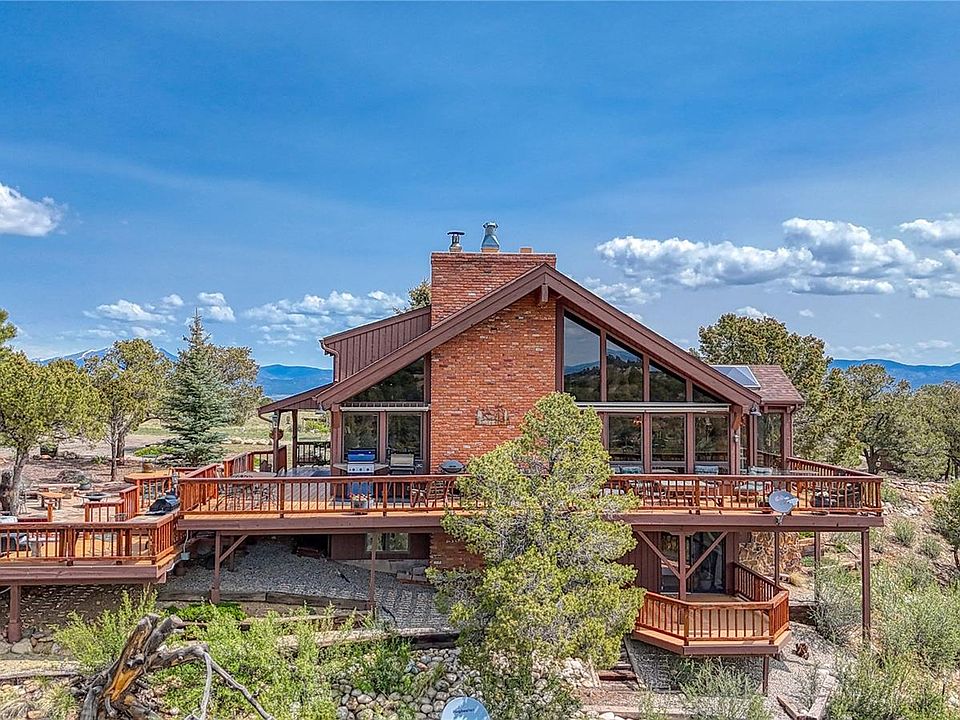 Perched at 8,442 feet in Mesa Antero Estates, this exceptional 4-bedroom, 4-bath mountain residence spans 74.53 acres and offers sweeping 360° views of the Continental Divide and surrounding 14,000-foot peaks. Impeccably maintained, the property includes a separately deeded, undeveloped 36.27-acre parcel, presenting excellent potential for future development or resale. The home has also recently received a brand-new septic system and leach field, providing added value and peace of mind.
