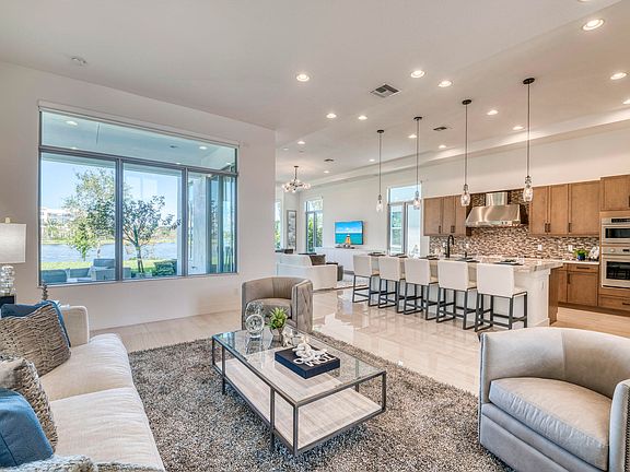 BEST VALUE IN ALTON!!! Look no further! Alton's largest and most desirable floor plan with one of the best lake views and lot in the community could be yours! This contemporary, like- new York model is over 5,000 square feet and conveniently located just steps from the Alton clubhouse. This home features 5 bedrooms, 5 bathrooms, a powder room, 2 laundry rooms, an enclosed den, an oversized loft/clubroom and a 3-car garage. Upgrades include: high-end monogram kitchen appliances, large, high-gloss porcelain tile flooring throughout the first floor, hardwood flooring in the first floor primary bedroom and a custom wood stairwell with iron railings. This smart home has impact windows and doors, spray foam insulation and hardwired electric window treatments in the main rooms. The backyard has an expansive view of the largest lake within Alton. Design your own custom pool and summer kitchen for the ultimate Florida lifestyle. Don't miss this opportunity to own one of the best lots in Alton! The Club at Alton is the heart of social & fitness activity for residents to be healthy & energized. The clubhouse features a fitness center, children's playroom, a club room with a kitchenette, multi-purpose cardio space, resort-pool with lap lanes and beach entrance, playground, multi-purpose sports courts, and multi-purpose green spaces. Alton is conveniently located near the Alton Town Center and offers fabulous retail, dining and entertainment options. Drive over in your car or golf cart, bike or walk...take your pick. Live your best life here!