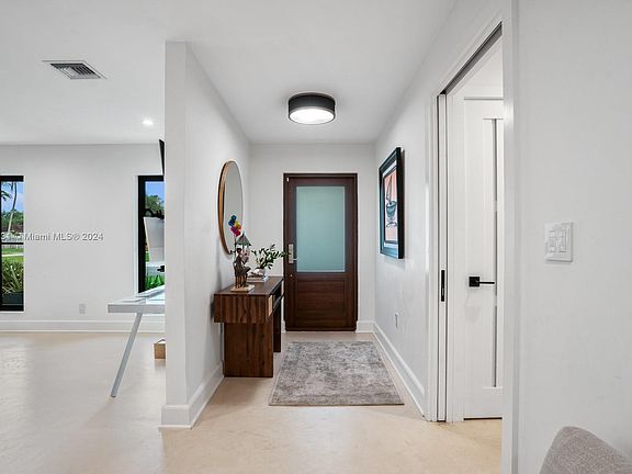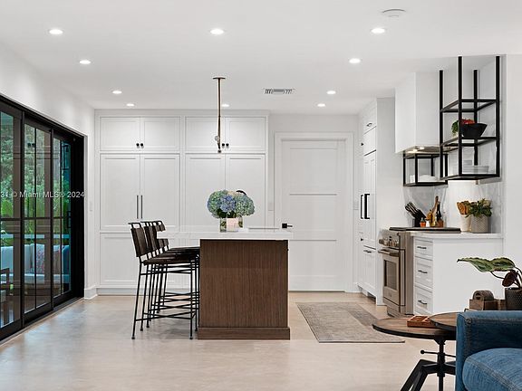 Exceptional turn-key home,located in the desired Village of Pinecrest.Completely renovated;contemporary home features bright/spacious living areas,built w/superior quality in mind.Designed w/an open layout,this residence flawlessly integrates indoor/outdoor spaces;boasting polished concrete & wenge wood floors,custom cabinets,top-of-the-line appliances,impact windows,new roof,electrical,plumbing & more.Functionality meets style in every corner of this home,offering a sleek & durable finish throughout.This property is equipped with solar panels,ensuring energy independence & sustainability.Situated on a ½ acre corner lot,this home offers privacy w/expansive outdoor areas;perfect for families & entertaining.Experience the perfect blend of luxury & practicality in this extraordinary residence