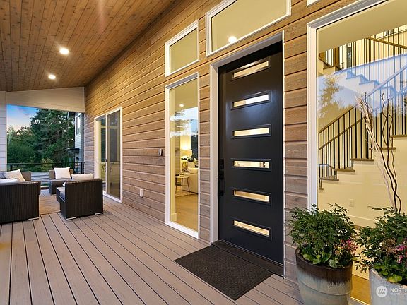 Hazen Hills light-filled new home by high-end builder Prestigious Builds. Main floor features an open-concept floor plan, 15’ Vaulted Ceilings, Oak HW floors & staircase, over-sized windows, fireplace, mudroom, covered entertaining patio, Gourmet Kitchen w/Island seating, Quartz countertops, Designer backsplash, walk-in pantry, & Professional grade SS Appliances. Lower level boasts Bonus room w/wet bar, guest bdrm, & ¾ bath. Upstairs Primary Suite has hand-tiled ¾ bath & walk-in closet, 2 Bdrms, full bath, utility rm, den/office, & covered decks. 2 Car garage, 200+ sq ft gym, and EV charger ready. Fully fenced landscaped front and back yards. Moments away from The Village at Totem Lake, I405 & public transit.