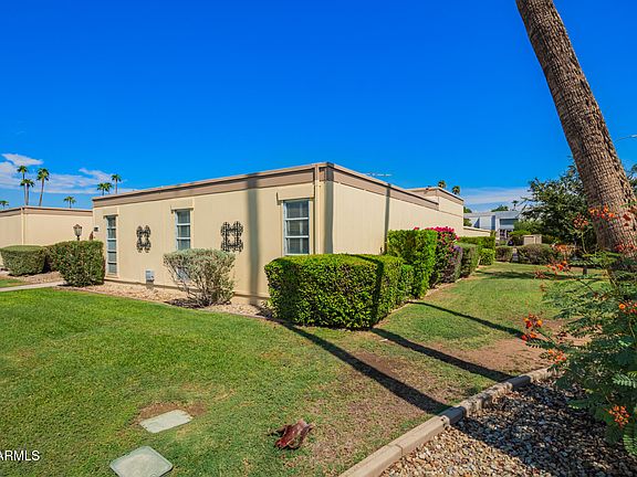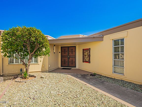 Welcome to your new bright and airy patio home in the heart of Sun City! Boasting a spacious 1,835 sq.ft. floor plan with two bedrooms plus a versatile den/office and two bathrooms, this home offers comfort and flexibility. The inviting kitchen includes a charming breakfast nook with a sliding door that opens to the patio, perfect for enjoying your morning coffee. The large primary suite features a private en suite bathroom and generous closet space. Step outside to the private, serene backyard with an extended patio, custom pavers, and mature fruit trees--ideal for relaxing or entertaining. Ideally located across the street from the Lakeview Rec Center (just one of many Rec Centers), and less than a mile from shopping, dining and Banner Medical Center. All this, combined with Sun City's endless amenities, makes this home a true gem!