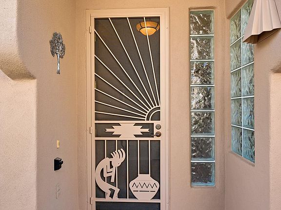 Welcome to this beautifully appointed patio home in a highly sought-after active adult community of Vistoso Village! With its thoughtful design and fantastic features, this home offers the perfect blend of comfort and style. Roof Replaced 8/25, HVAC 4/24. The spacious kitchen boasts 42-inch maple cabinets with convenient pull-out shelving and newer appliances, making meal prep a breeze. The adjacent dining area features a stunning built-in buffet, providing extra storage and elegance to meet your entertaining needs. The home features four bay windows, allowing natural light to flood the space and offering serene views of the surrounding area. The guest bedroom is outfitted with a built-in office desk, offering a quiet and functional workspace, while the primary bedroom is generously sized Step outside to a large patio with rolling shades, perfect for enjoying outdoor living in any season. The yard backs to a common area greenbelt, providing privacy and a peaceful backdrop.