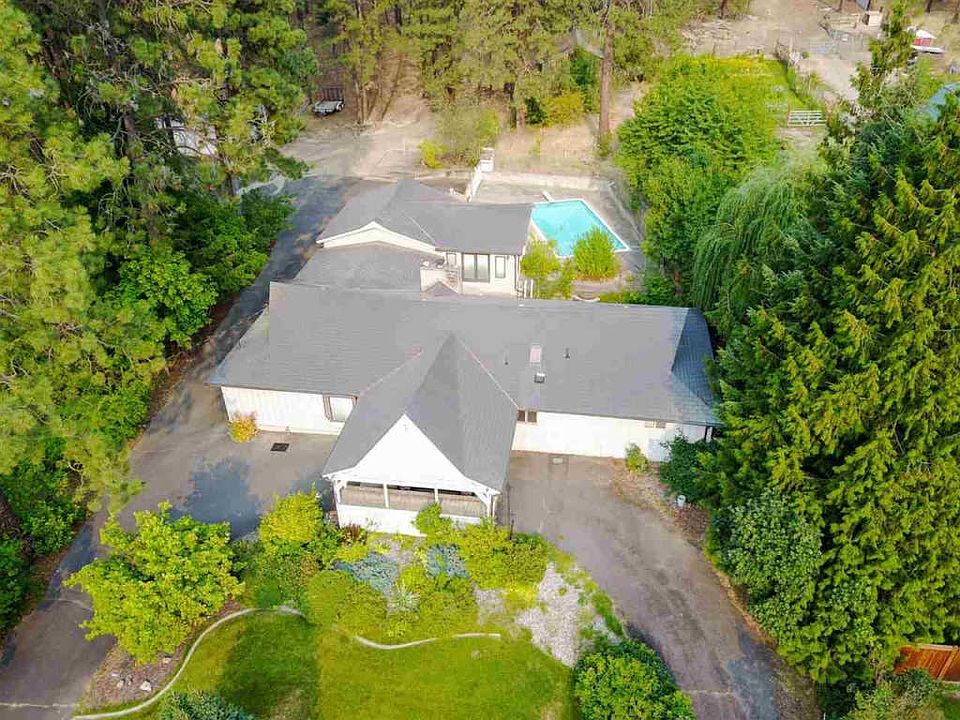 Rare Mid Century Modern Rancher. Large lot with courtyard, pool, enclosed spa, fruit trees and more. Roof is 100% copper with a beautiful patina. Cedar board and batten siding. Potential 5th bedroom/mother-in-law quarters has private entrance directly from the garage or courtyard. Bonus parking under the covered front entrance. 2 entrances onto Mill rd. 3 minutes from Mead High School. (Listing Agent is related to Seller)