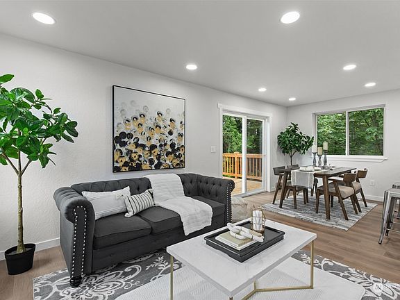 This 3BD/1.75BA home is a must see! The interior boasts a fully remodeled kitchen with quartz countertops and stainless steel appliances, gorgeous LVP flooring throughout the home to the entertainment sized deck. The Primary Suite boasts an impressive layout with walk-in closet. Cozy wood-burning fireplace adds a touch of warmth and charm. Lower Family room features a wet bar which can be a flexible fourth bedroom, rentable unit or multigenerational living. Home also features a separate Laundry room. Additionally, this home has a generous attached 3-car garage. This perfect blend of modern updates with natural beauty, offers the ultimate living experience. Make this haven your home!