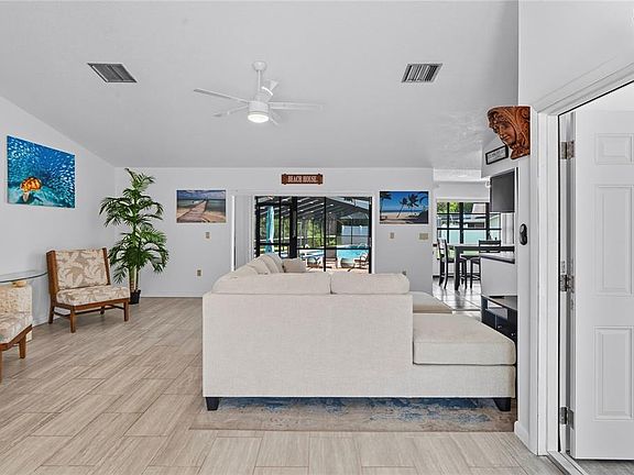 HUGE PRICE IMPROVEMENT .....WELCOME TO YOUR DREAM HOME!! ONE OF A KIND CUSTOM property on 2 large Waterfront lots, tennis court, pool and gazebo! Drive up to the circular driveway and appreciate the curb appeal of this attractive home. As you enter the double leaded glass doors, the vaulted ceilings give depth to the open floorplan. Triple sliders lead from the large living room to the patio. The kitchen features Stainless Steel Appliances, Beautiful Cherry Wood Cabinets, heavy-duty Silestone countertops with plenty of workspace. The large master bedroom has space for exercise equipment and a walk-in closet. The bedroom opens onto the large screened patio from where you can enjoy your private lake view! On the opposite side of the home are the additional 2 bedrooms with their own sliding glass doors to a screen enclosed patio! Beyond the Patio is a darling Gazebo! and an office that can be converted in a 4th bedroom. The Sparkling Diamond Bright Lap Pool has a "Heated" Spillover Spa and stunning Lakefront setting within the 82ft Screen Enclosure! Property is high and dry, situated well during hurricane season. Perfect family setting and excellent for entertaining guests. This home is truly one of a kind and will not last!!
