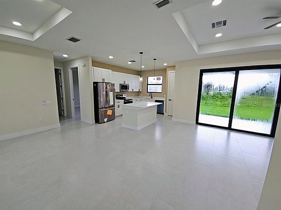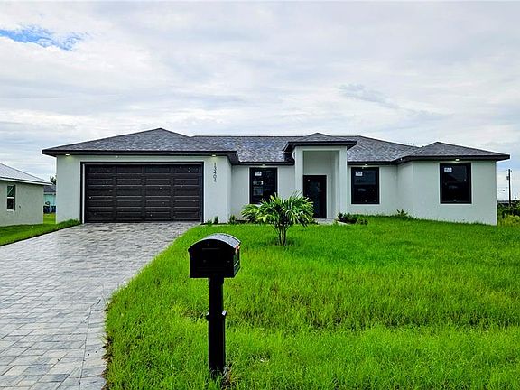 Brand new 4-bedroom, 2-bathroom home with 2-car garage, located in the very desirable South Gulf Cove community. This beautifully finished residence offers a spacious open-concept layout, perfect for modern living. The master suite features a luxurious ensuite bathroom and a generous walk-in closet. Elegant porcelain tile flooring runs throughout the home, complemented by stylish ceiling fans and contemporary lighting fixtures. The kitchen is a chef’s dream with granite countertops, a large island, and stainless steel GE appliances. A dedicated laundry room with washer and dryer adds everyday convenience. Impact windows provide peace of mind and energy efficiency. Situated on a 10,000 sq ft lot, the property offers plenty of room for future addition, whether a pool, garden, or outdoor entertainment space. The rear patio is ideal for relaxing or enjoying time with family in the Florida sunshine. HOA membership is optional and not a requirement in this community.