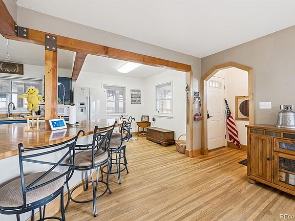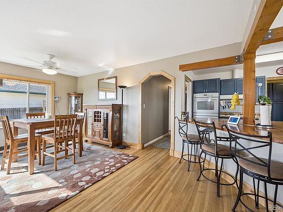 Charming 1958 Mid Century Mod inspired ranch-style home in Arvada with spectacular mountain views! CAR ENTHUSIAST DREAM! This sweet home offers timeless character & thoughtful updates. Step into a bright & sunny kitchen. Nicely updated kitchen is a true highlight—featuring a hardwood floors, wood counters, blue cabinets, and a double oven. Open to the kitchen you'll find the spacious dining room. The massive family room offers beautiful vaulted T&G ceiling with fan & light, built-in wood shelving, and a flagstone fireplace that anchors the room w/ warmth & character. The main floor features a comfortable primary suite with a private ensuite ¾ bath and access to outside. Large walk-in closet and nicely updated. Bedroom 2 with natural light and wood floors. Bedroom 3 has the potential for adding a conforming bedroom, a great space for a home office, playroom or home gym. Main level laundry offering convenience and functionality. Wonderful bag drop off 3 car attached garage with mud room, powder bath, and lots of storage. Enjoy Colorado evenings in your fully fenced, party house! Huge back patio—complete with a built-in outdoor kitchen, hot tub, large storage shed, water feature, pergola and privacy! Massive 3-car garage and generous RV/off-street parking provide everyday convenience. Seller owns the Solar. Live close to multiple parks, shopping, dining, and outstanding JeffCo schools including Ralston Valley which is a 10 for college prep! And for a little fun, watch the teams practice as you enjoy your mountain views over the playing fields at the high school! You're a short bike ride to Standley Lake regional park, with small beach area, camping teepees and non-motorized boating for recreation! Don't miss this amazing home with NO HOA.