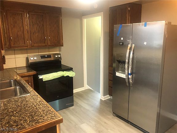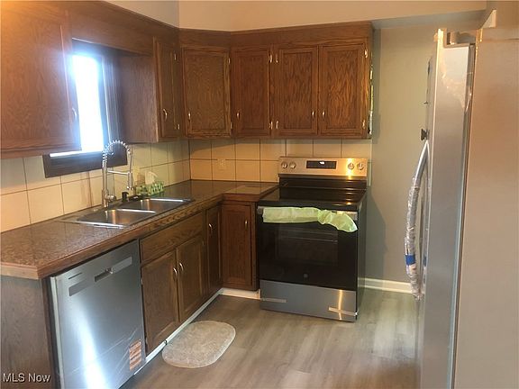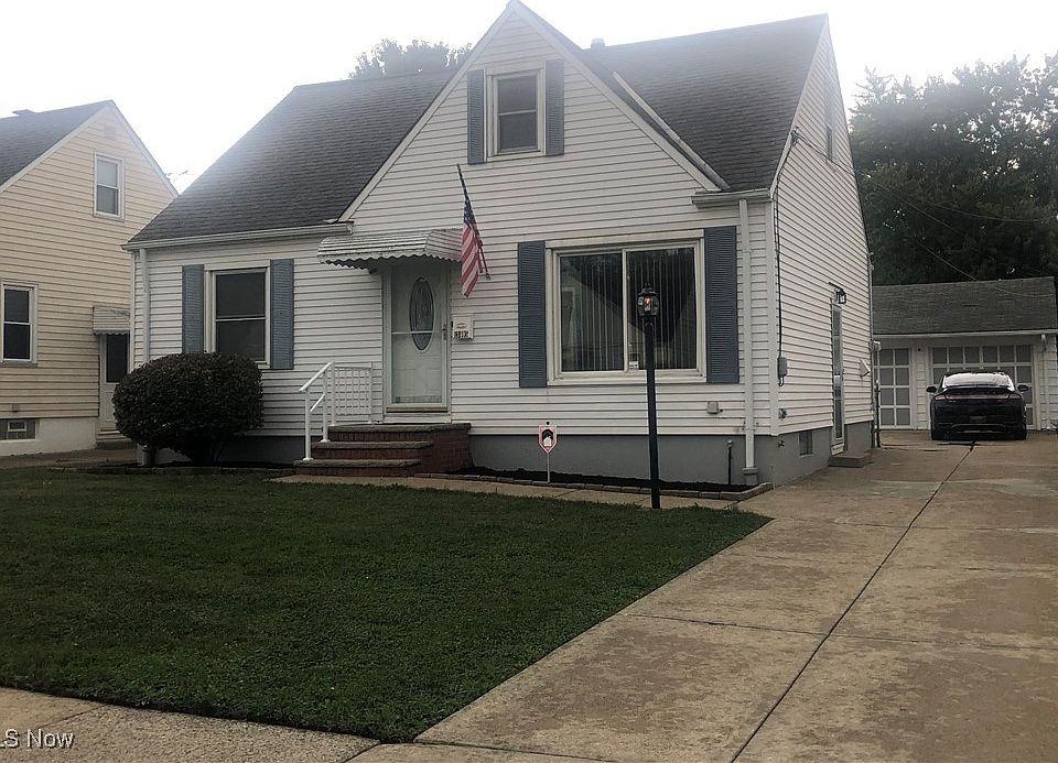 Don't miss this charming three bedroom 1.5 bath Garfield Heights Cape Cod! Absolute move-in condition! Eat in kitchen with new appliances (refrigerator, stove, and dishwasher), New flooring, and sliding glass doors leading to a small covered deck and patio. First floor has newly remodeled main bath and hardwood floors in living room and bedrooms. Upper level master bedroom has new carpeting, built-in dressers, and a half bath. Lower level has finished rec room, shower, glass block windows, and a second kitchen. Newer furnace installed in 2008 with central air. Some newer vinyl windows throughout. Full fenced in yard, Concrete drive, and a detached two car garage. POS violation free! One year home warranty included.