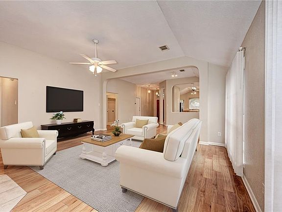 Attractive one-story brick home located in a quiet cul-de-sac. Inviting kitchen with island and pantry. Excellent natural light, cozy fireplace in the living room. open floor plan, garden tub, separate shower, and double vanity in the master bathroom. Walk-in closets. Carpet, hard tile, and plank flooring throughout the home. Double-paned windows for energy efficiency. Close to Mopac, I-35, Domain, major employers. Community pool, play area.